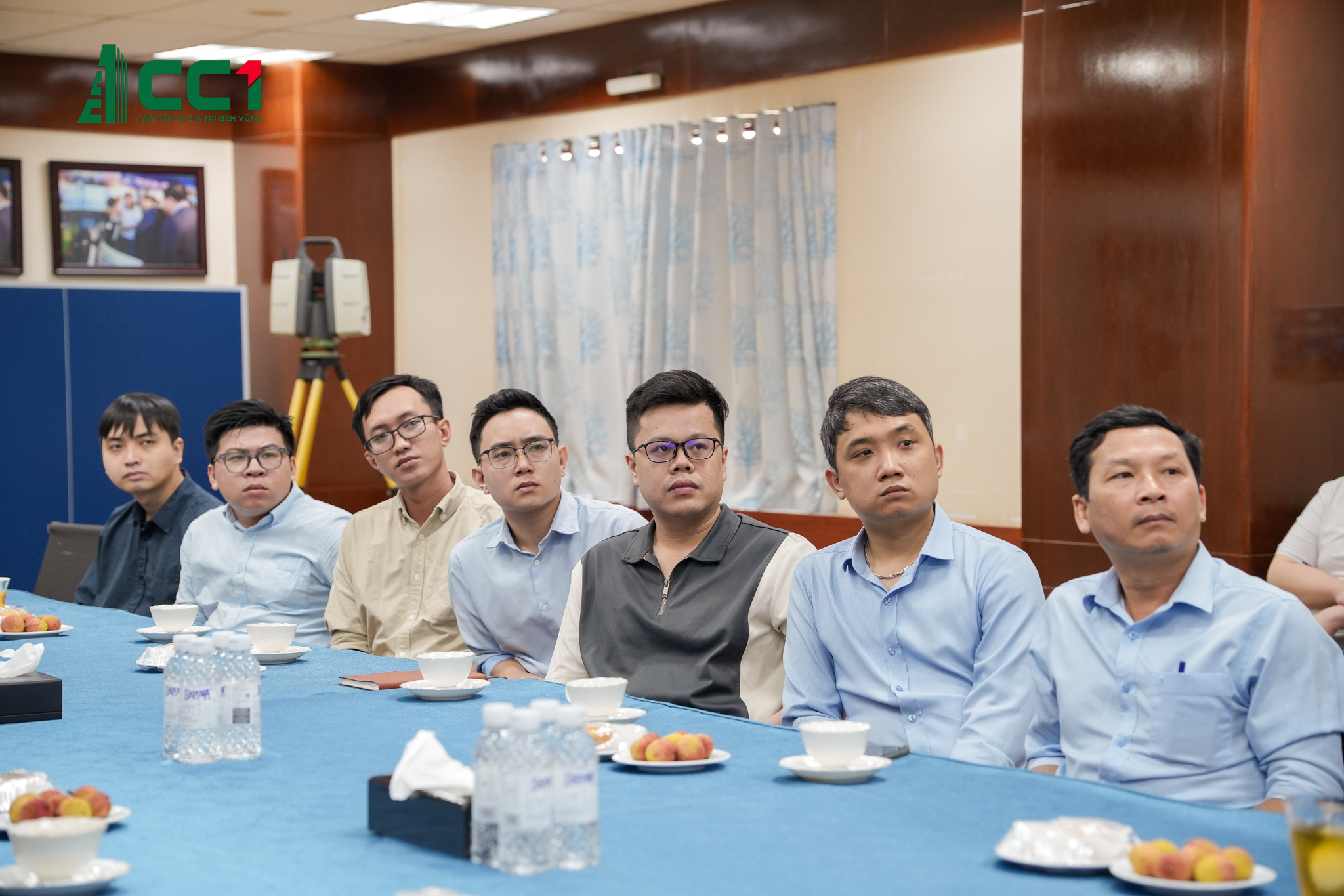 Đội ngũ kỹ sư CC1 đã đặt nhiều câu hỏi để hiểu rõ hơn về nguyên lý vận hành, cách thức tích hợp dữ liệu địa hình, BIM và hệ thống quan trắc vào nền tảng GIS. Buổi làm việc không chỉ là cơ hội để CC1 tiếp cận các giải pháp công nghệ hiện đại, mà còn là dịp để hai doanh nghiệp đầu ngành trao đổi kinh nghiệm và đặt nền móng cho những ký kết hợp tác tương lai trong việc ứng dụng công nghệ số vào thi công, quản lý công trình.